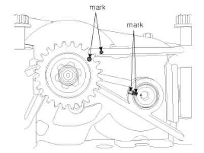 The timing marks of balance shaft & oil pump module sprocket and crankshaft sprocket should be matched with the timing marks (color link) of balance shaft chain.