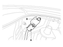 6. Loosen the front impact sensor mounting nut (B) and remove the front impact sensor.