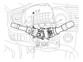 7. Disconnect the connector and then remove the clock spring (A).