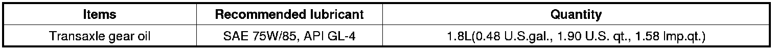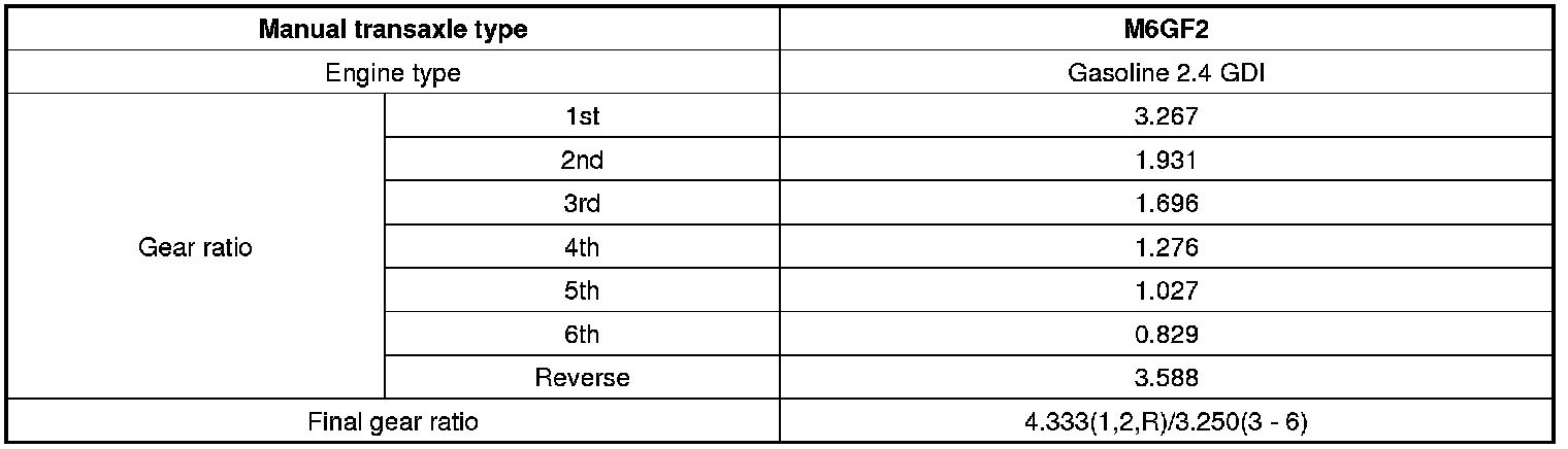 Manual Transmission/Transaxle: Application and ID: Specifications