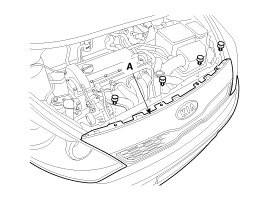 1. After loosening the mounting clips, then remove the radiator grille upper cover (A).