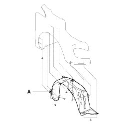 1. After loosening the mounting clip and screws, then remove the front mud guard (A).