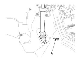 5. Loosen the bolt (A) and then disconnect the universal joint assembly from the pinion of the steering gear box.