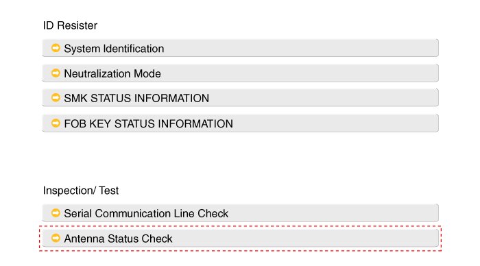 3. After IGN ON, select the "Antenna Status Check".