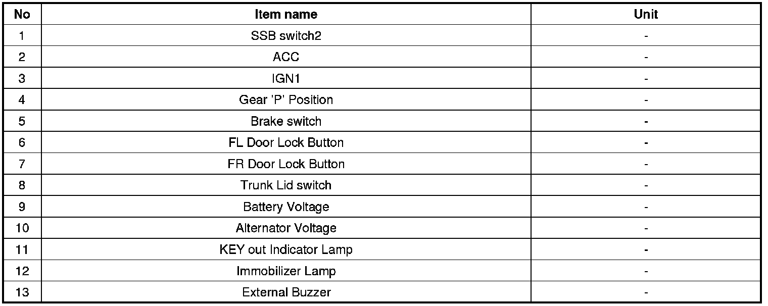 1. SMART KEY unit Input problem : switch diagnosis