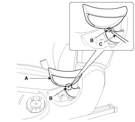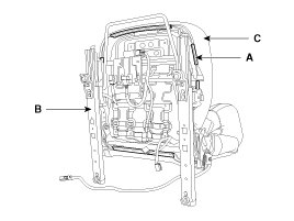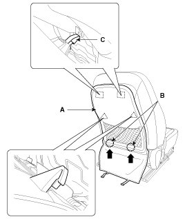 4. Push the protector(A), and then front seat cushion cover (C) from the frame(B).
