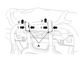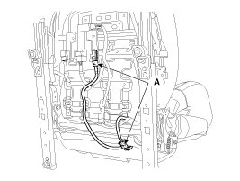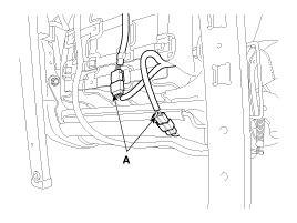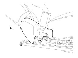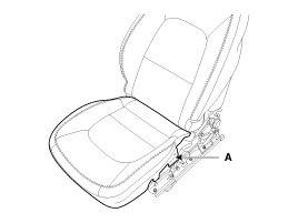 1. After loosening the front seat assembly mounting bolts, remove the front seat assembly (A).