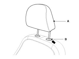 2. Push the lock pin (B), remove the headrest (A).