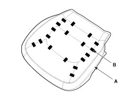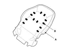 9. After removing the hog-ring clips (B) on the front of seat back and remove the front seat back cover (A).
