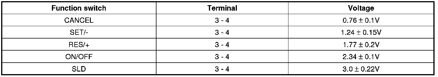 2. Measure voltage between terminals on the harness side connector when each function switch is ON (switch is depressed).