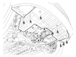 2. Remove the dust cover (A) and unfasten the transaxle mounting bolt (B).