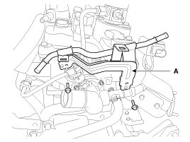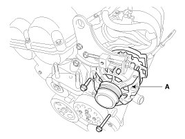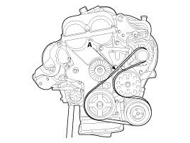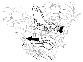 20. Loosen the alternator tension adjusting bolt (A) to loosen tension.