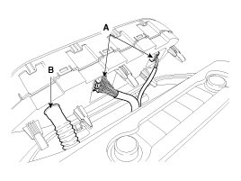 3. Disconnect the connectors (A) and the air hose (B).