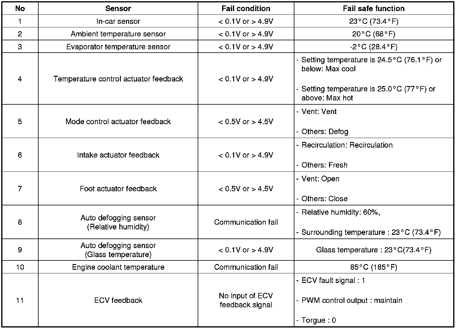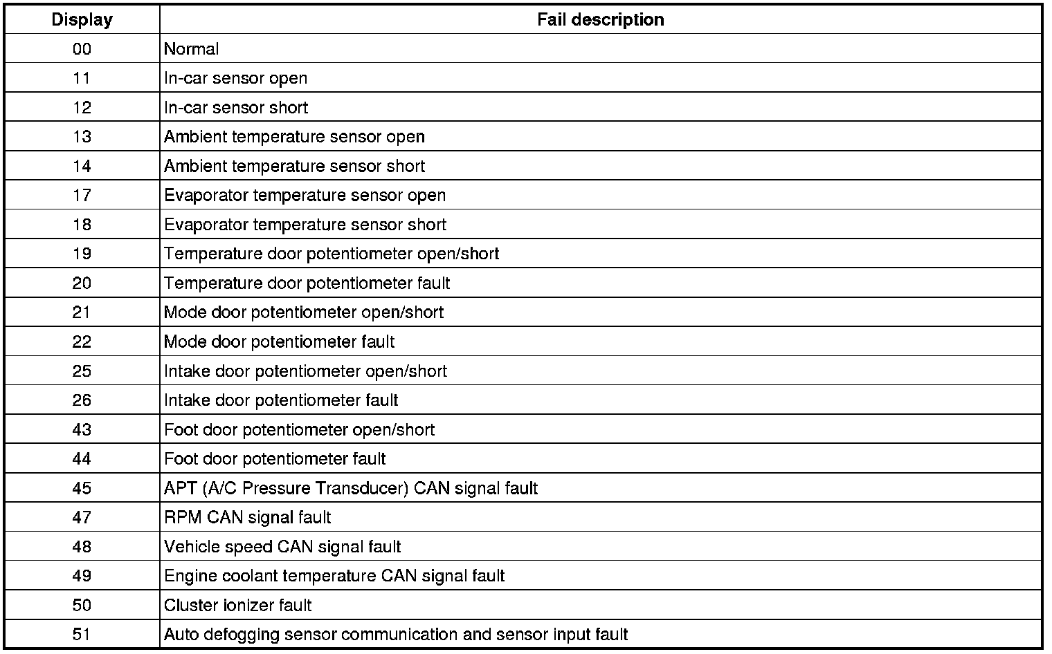 4. If fault codes are displayed during the check, inspect malfunction causes by referring to fault codes table.