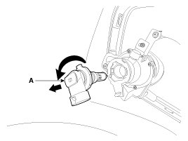 3. Remove the fog lamp bulb (A) after turning in the counterclockwise direction.