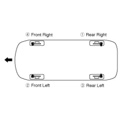 4. Repeat the procedure for wheel in the sequence shown below until air bubbles no longer appear in the fluid.