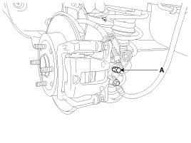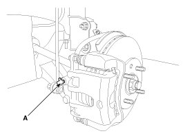 3. Loosen the right-rear brake bleed screw (A) to allow air to escape from the system. Then tighten the bleed screw securely.