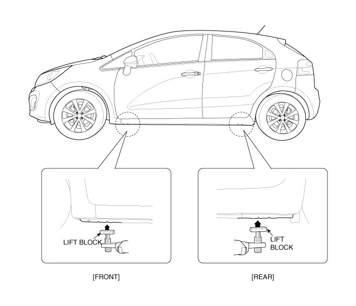 1. Place the lift blocks under the support points as shown in the illustration.