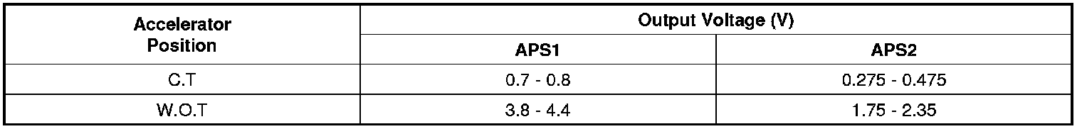Accelerator Pedal Position Sensor: Specifications
