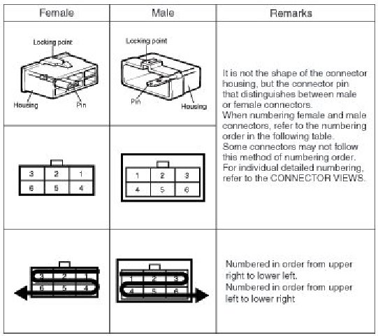 2. Each terminal on the connector is numbered in accordance with (4) Connector View and Numbering Order.