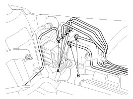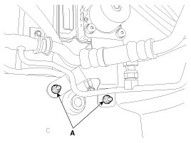 4. Loosen the HECU bracket nuts (A), then remove HECU and bracket.
