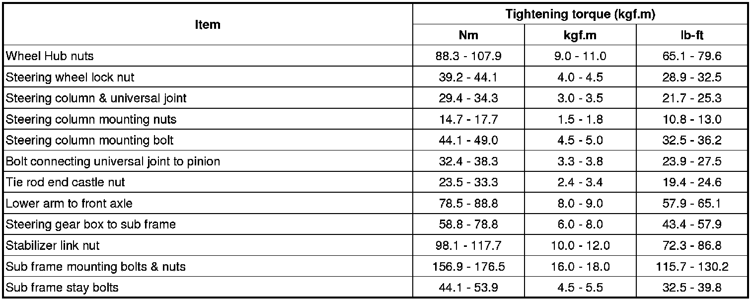 Tightening Torques