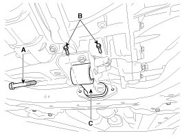 20. Remove the automatic transaxle with a jack after removing the mounting bolt (A-2ea, B-3ea).