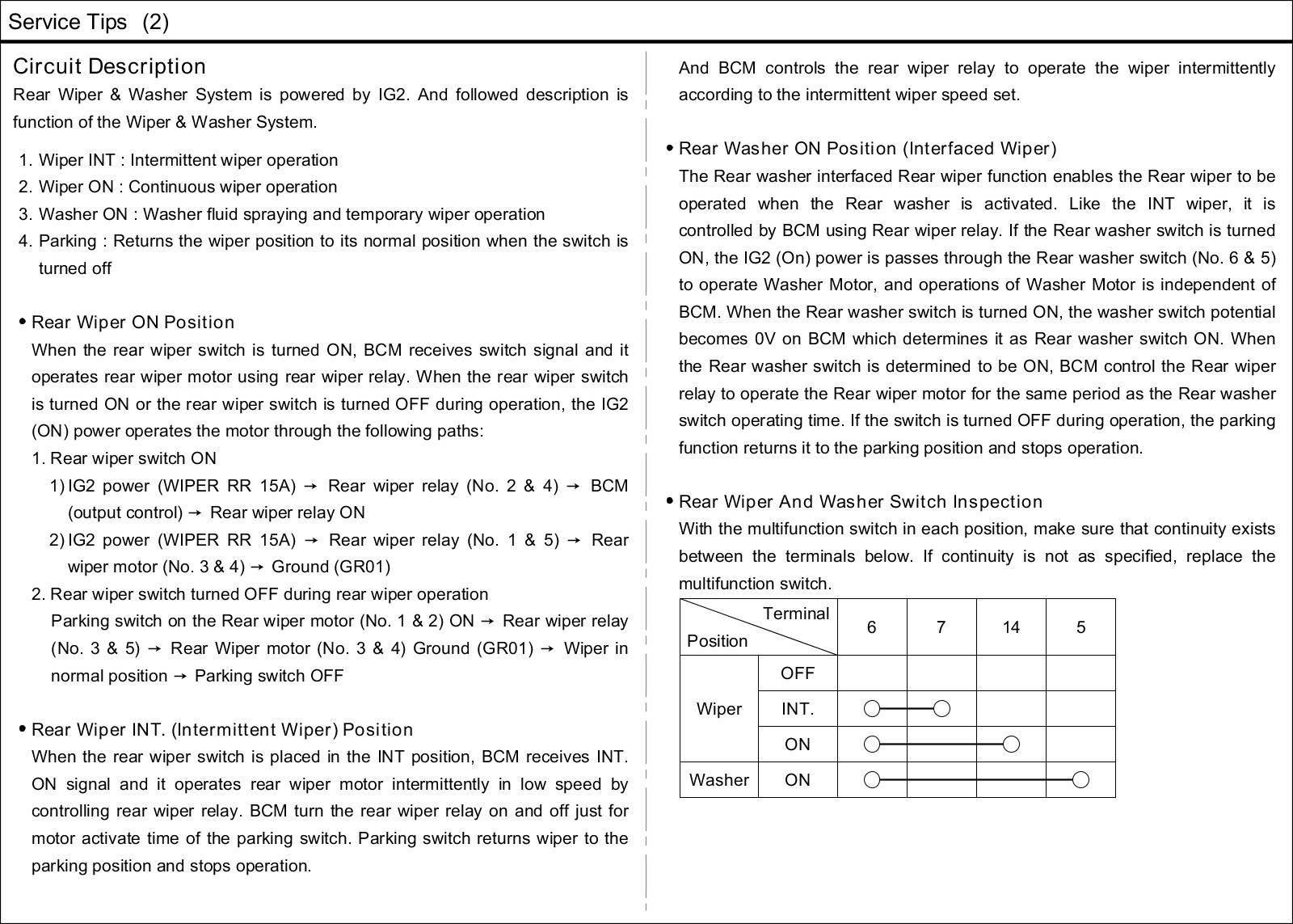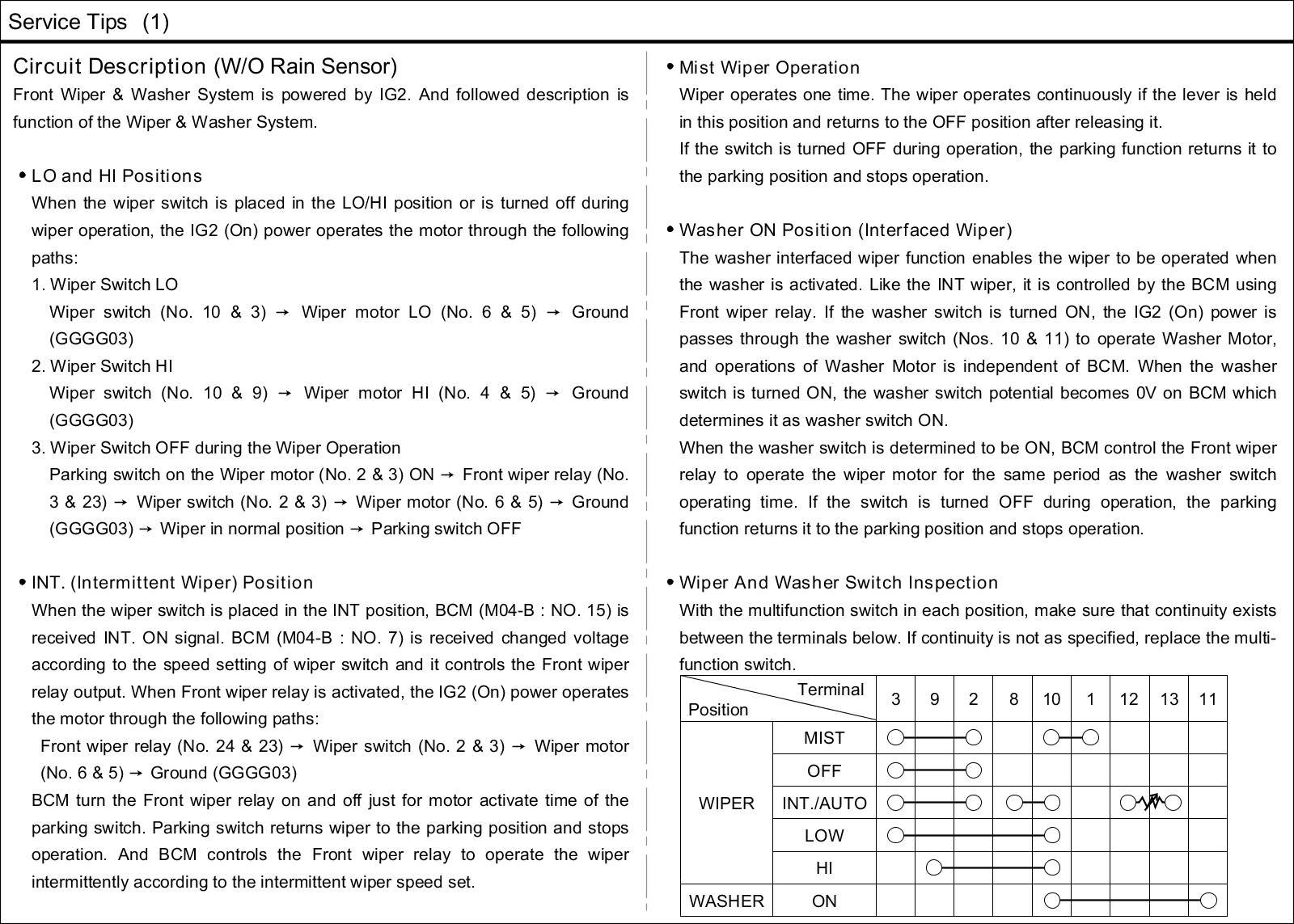 Wiper and Washer Systems: Description and Operation
