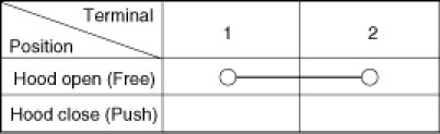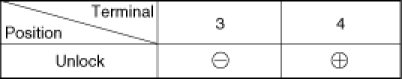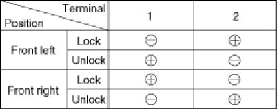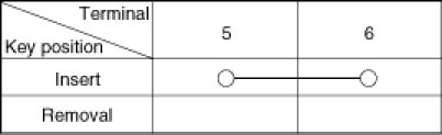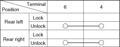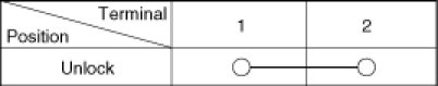 4. Check for continuity between the terminals in each switch position when inserting the key into the door according to the table.