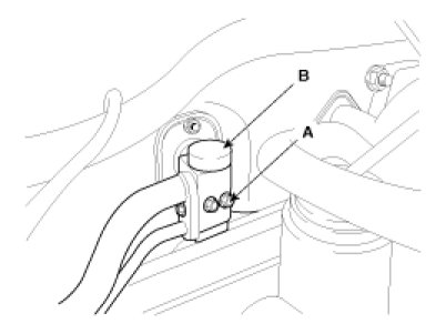 5. Disconnect the inlet (A) and outlet (B) heater hoses from the heater unit.