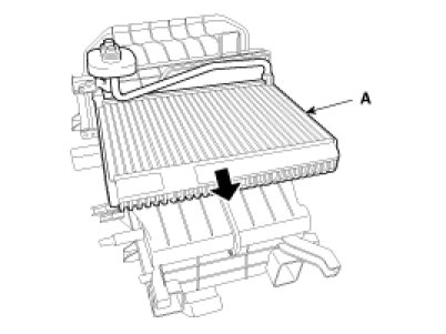 4. Remove the bolts (A) and the expansion valve (B) from the evaporator core.