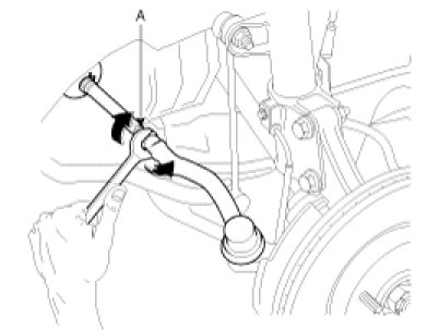 2. Adjust rear toe by turning the rear assist arm cam bolt (A) clockwise or counter clockwise. Toe adjustment should be made by turning the right and left cam bolt by the same amount.