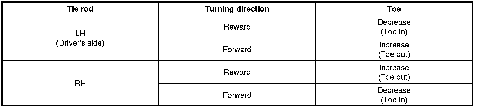 3. Adjust the toe by screwing or unscrewing the tie rod. Toe adjustment should be made by turning the right and left tie rods by the same amount.