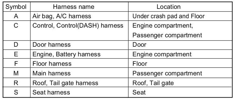 - It depends on vehicles, it is necessary to check the harness name symbol on the harness layouts for details symbol.