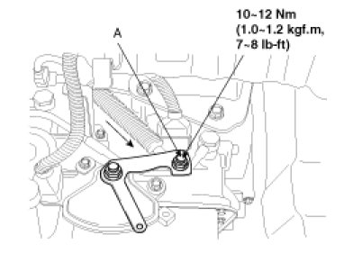 10. After tightening the shift cable mounting nut, connect the inhibitor switch.