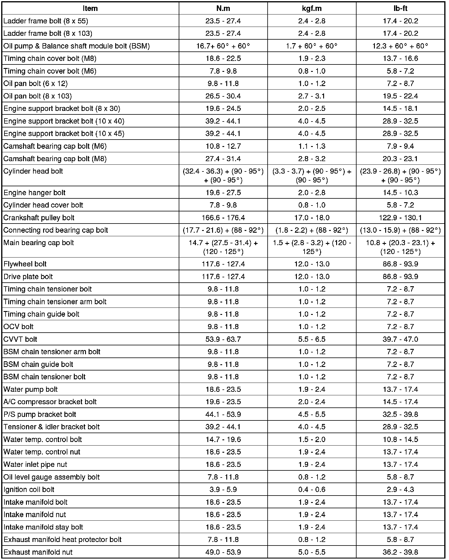 TIGHTENING TORQUES