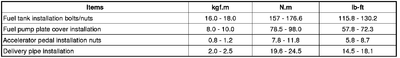 Tightening torques