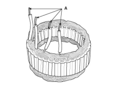 2. Check that there is no continuity between the slip rings and the rotor (B) or rotor shaft (C).