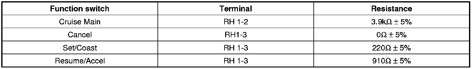 2. Measure resistance between terminals on the control switch when each function switch is ON (switch is depressed).