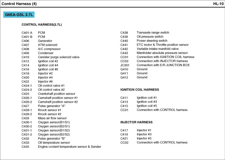 Control Harness Index: