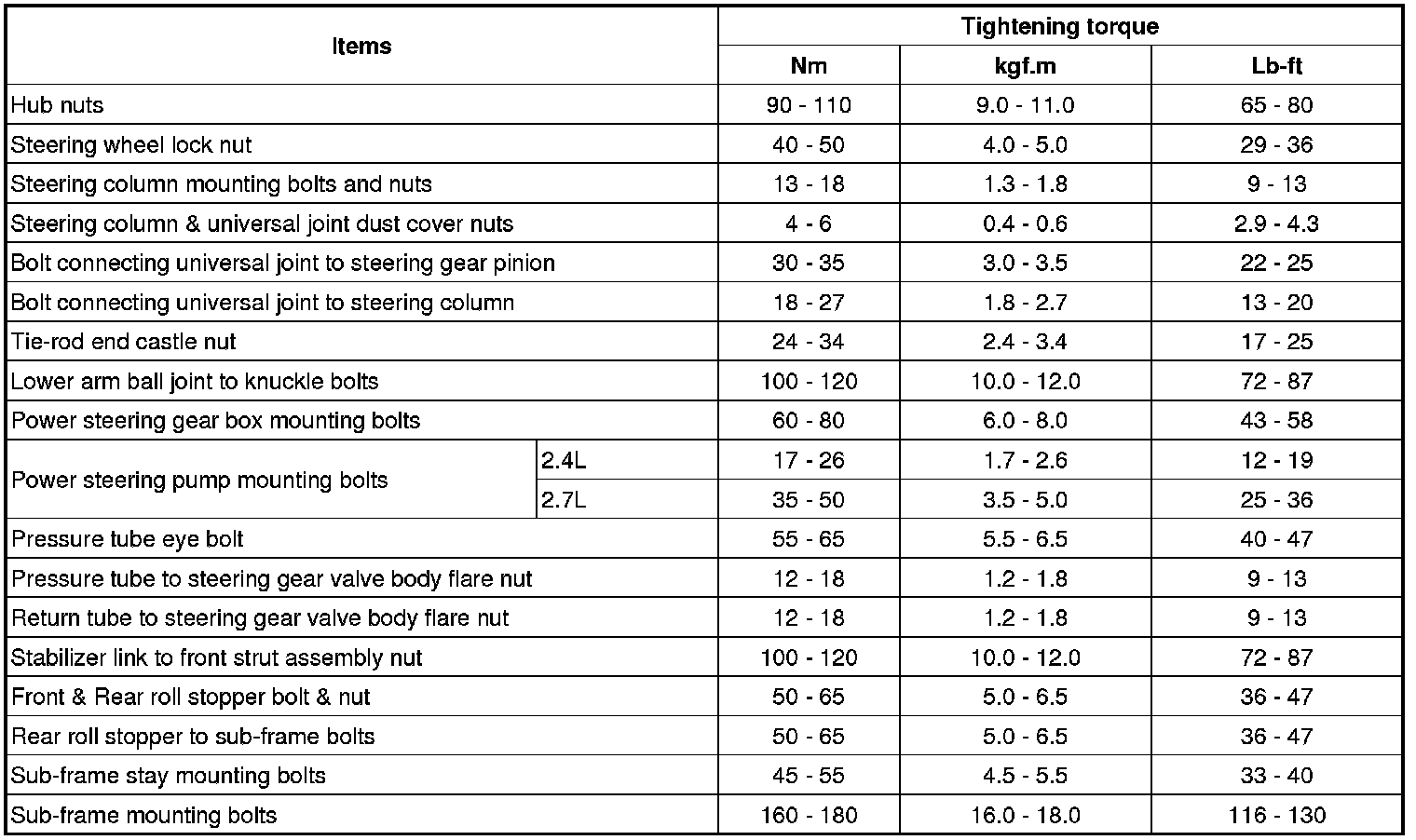 TIGHTENING TORQUE