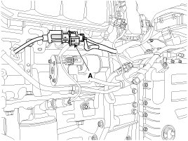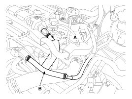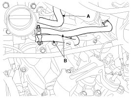 7. Disconnect the PCV (Positive crankcase ventilation) hose (A) and the PCSV (Purge control solenoid valve) hose (B).