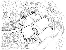 (3) Disconnect the air intake hose and then remove the air cleaner assembly (D).