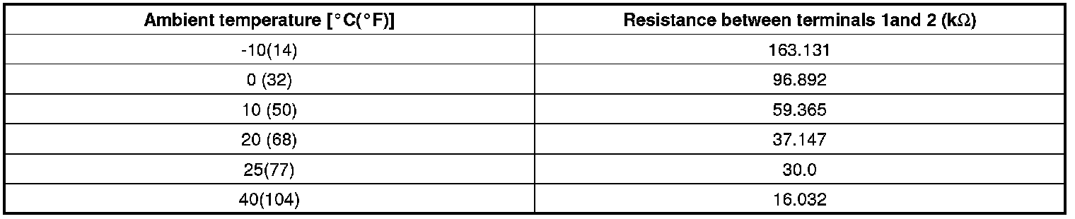 3. Check the resistance of ambient temperature sensor between terminals 1 and 2 whether it is changed by changing of the ambient temperature.