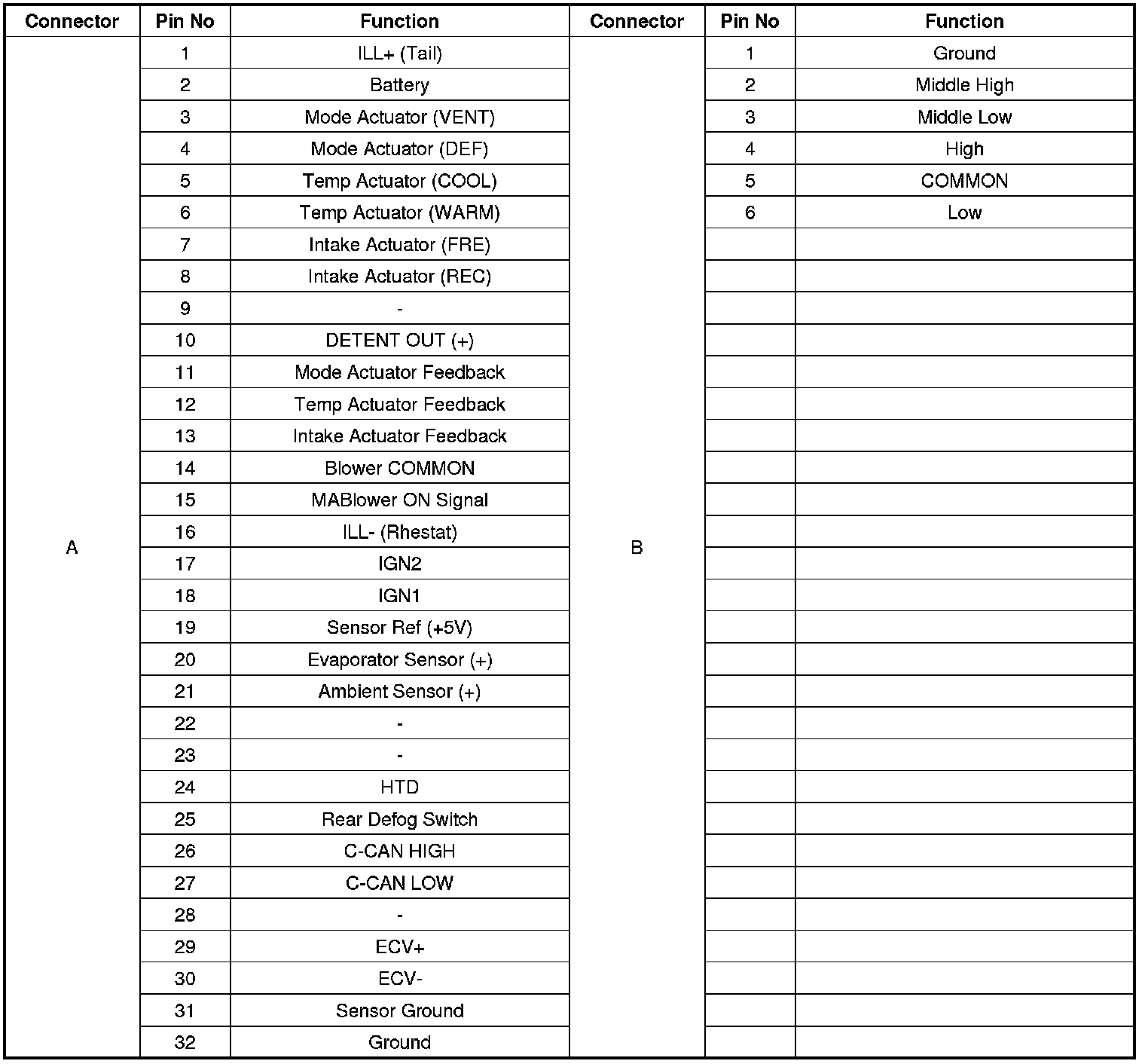 Connector Pin Function