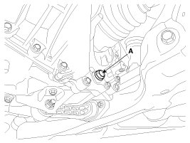 2. Drain the manual transaxle oil after loosening the drain plug (A).