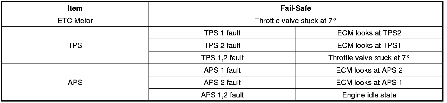 When throttle value is stuck at 7°, engine speed is limited at below 1,500rpm and vehicle speed at maximum 40 - 50 km/h (25 - 31 mph)