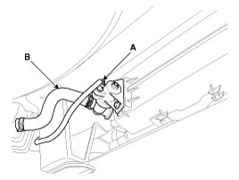 4. Disconnect the ventilation hose (B) from the canister close valve.