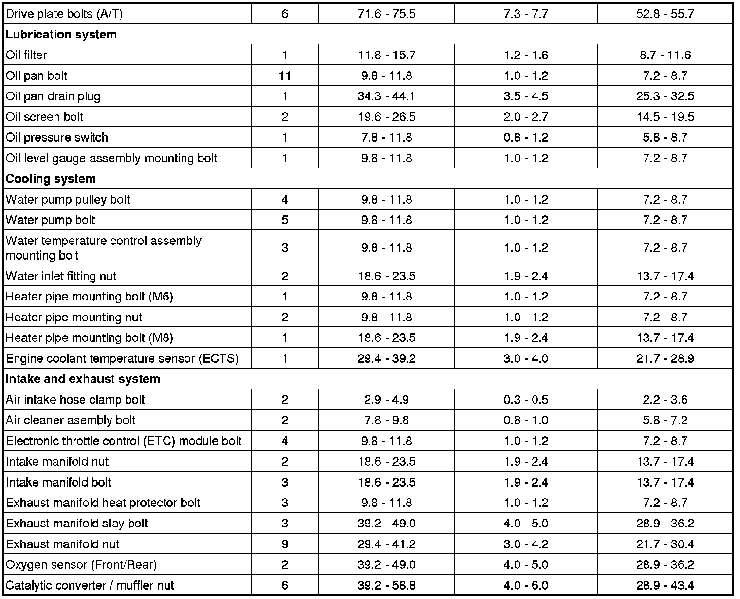 Tightening Torques