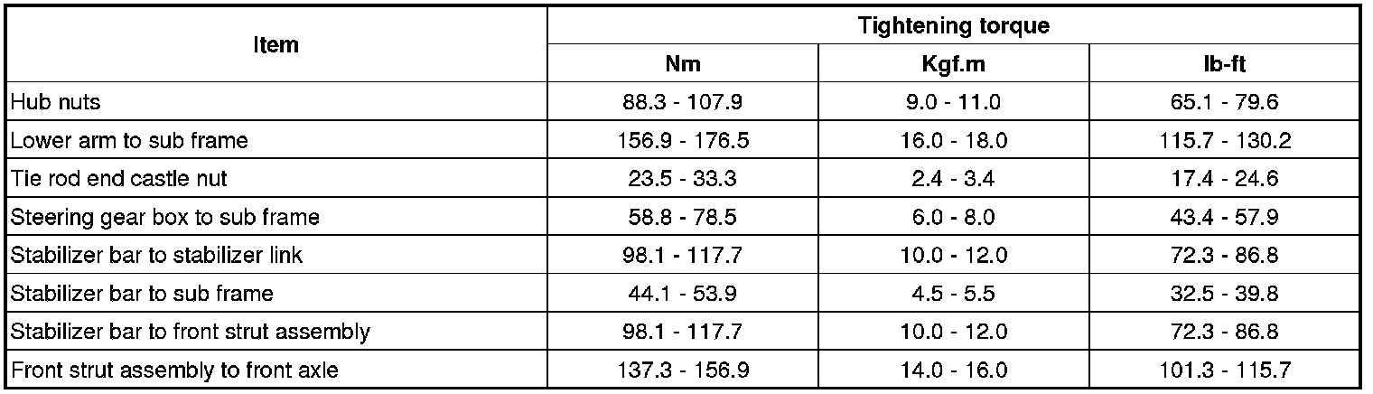 Tightening Torques